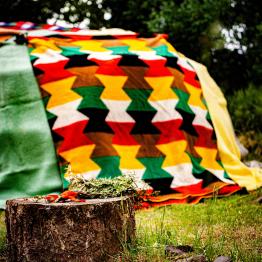 Als de deur gesloten is, is het aarde donker in de hut. Voor de ingang van de hut ligt op enkele passen de vuurplaats waar de stenen (grootouders) worden verhit. De geest van de zon komt in de vuurplaats.
